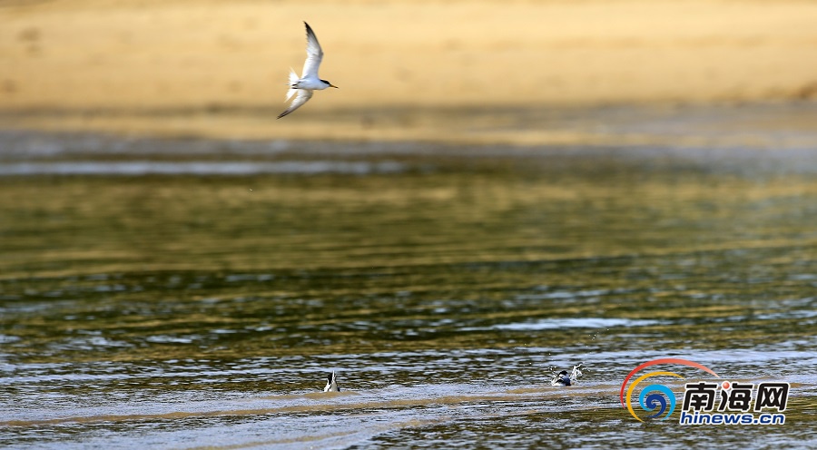 海南旅游頭條、南海網、南海網客戶端海口7月11日消息(海報集團全媒體中心記者 陳元才)7月11日,在海口五源河國家濕地公園,成群結隊的白額燕鷗在海灘上棲息覓食,集群飛舞場面壯觀。