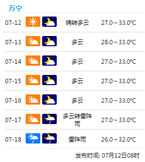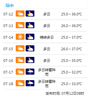 ?    海南部分市縣未來7天天氣預(yù)報↓↓↓