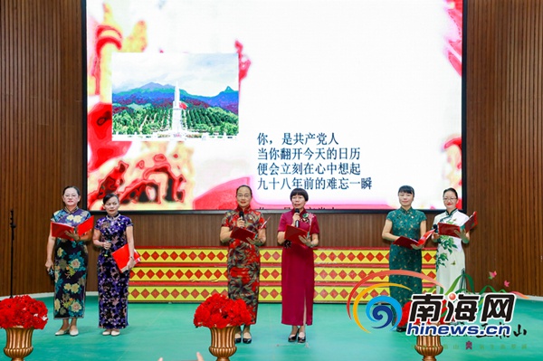 “你,是共產黨人!胸膛中永遠激蕩不滅的星火,穿越如磐風雨,照亮如墨夜空。”五指山市娘子軍宣講團的6位成員站在臺上,用飽含深情的朗誦講述了一名名共產黨員的初心和使命。
