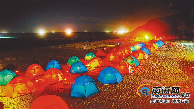 同樣熱鬧的,還有南灣猴島二期呆呆島。“在這樣一個安靜美麗的海灘露營,是令人很享受的獨特體驗。”來自山西的游客張佳帶著孩子前來度假,選擇夜宿海島。除了這樣的家庭親子游客,呆呆島露營產品也受到同學聚會、公司團建等青睞。他們做沙灘游戲、去海邊抓螃蟹,十分愜意。“呆呆島露營是游客滿意度最高的產品,去年以來,100人以上的團隊已超過70期。”海南陵水猴島旅業發展有限公司董事長助理符鶴飛告訴海南日報記者。