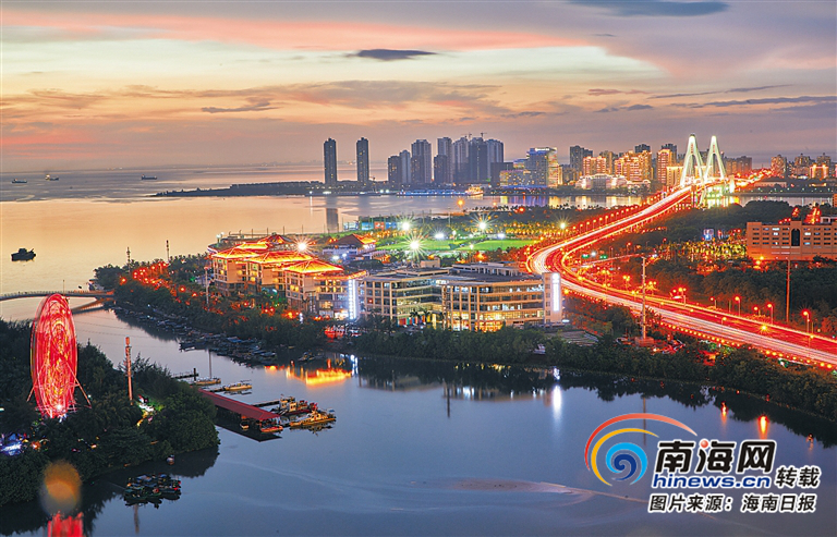 華燈初上的海口灣。 見習記者 封爍 攝