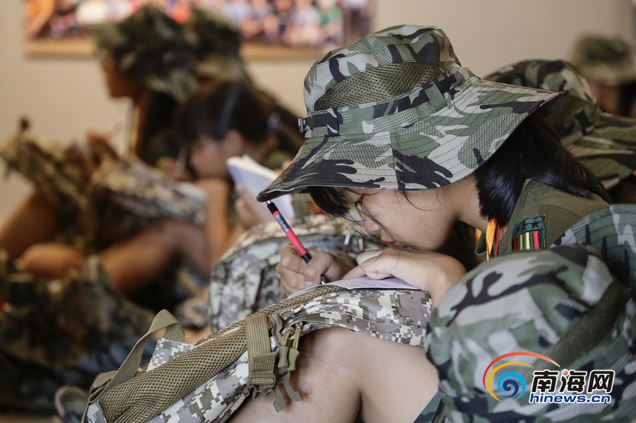講解員講解紅色歷史的同時,營員們在認真做好筆記。南海網(wǎng)記者 李昊 攝