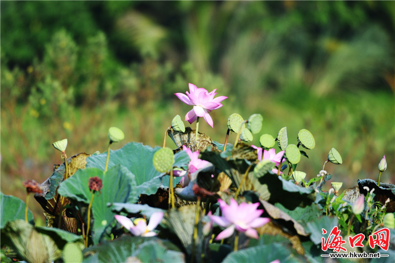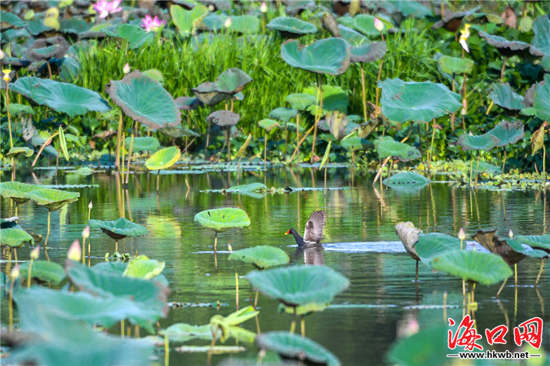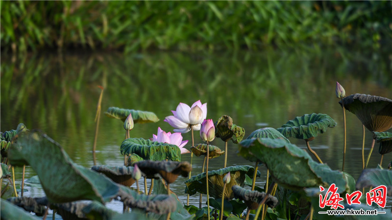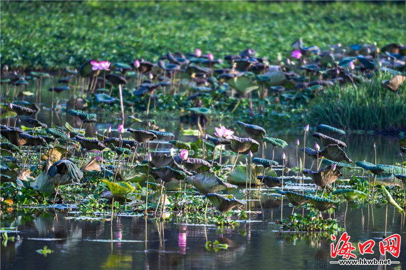 原標題:組圖|??谖逶春訃覞竦毓珗@荷花爭艷風光美