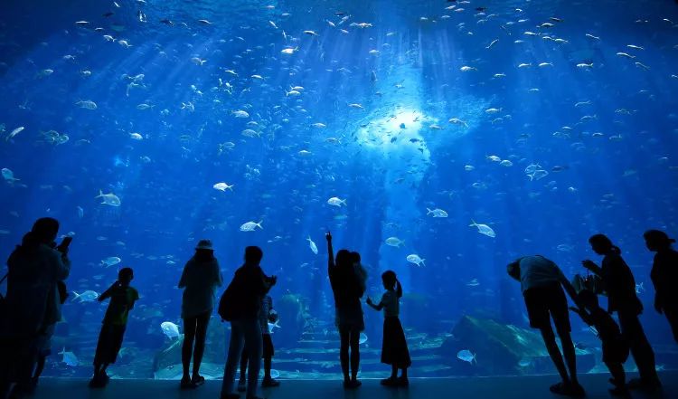 游客在三亞亞特蘭蒂斯水族館游玩(2018年8月3日攝)。新華社記者 郭程 攝