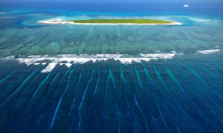 一條船駛入西沙晉卿島的航道(2017年4月23日無人機拍攝)。新華社記者 郭程 攝