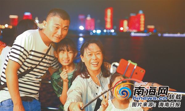 晚上8時(shí)30分,他們登上“??跒?號(hào)”游輪。隨著游輪慢慢開動(dòng),世紀(jì)大橋、萬綠園、濱海大道沿線建筑紛紛映入眼簾。寬敞明亮的船艙內(nèi)則上演了一場(chǎng)精彩紛呈的歌舞表演。