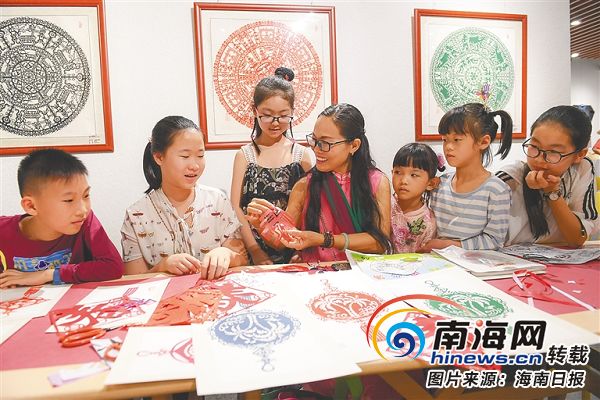 本來只是想?yún)⒂^這個(gè)旅游“打卡地”,但是門口《??诮?jīng)典美術(shù)作品展》的牌子吸引了一家人的注意力?!皨寢專锩嬗姓褂[我們?nèi)タ纯础!蓖d奮地說道。
