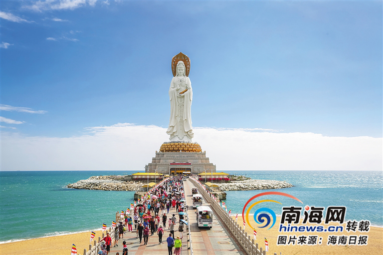 1998年,南山景區一期工程建成開放。1999年,農歷九月十九日,南山舉行了“南山海上觀音”敬造工程開工典禮。每當三亞市民張麗涵向朋友介紹起南山景區,談論起海上觀音像,語言中多少會帶有些許自豪感。“南山景區是海南最熱門的景區之一,也是中外游客到三亞游玩必去的景點之一,海上觀音像更是熱門‘打卡’點。”張麗涵說。