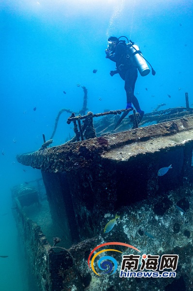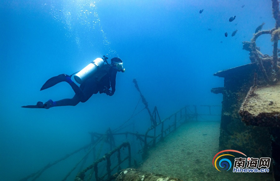海南旅游頭條、南海網、南海網客戶端陵水7月30日消息(海報集團全媒體中心記者 武威 特約記者 童國強)近日,在陵水分界洲島旅游區附近海域的海底,一位潛水員在查看沉船周邊海洋生態情況。據悉,分界洲島通過投放大型鐵質沉船、飛機殘骸、珊瑚礁體等,以便于藻類生長、微生物繁殖,形成食物鏈,起到修復海洋生態資源的作用。這不僅吸引了海魚、珊瑚等海洋生物棲息覓食,也成為游客潛水觀光的一道海底特色景觀。