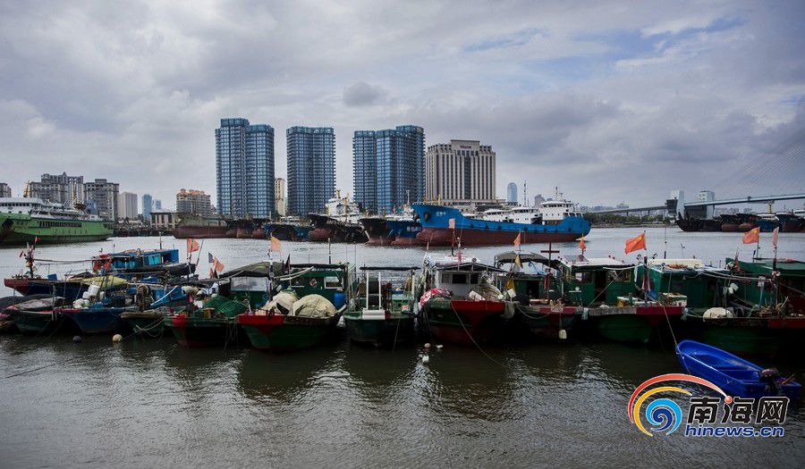 7月31日上午,瓊州海峽所有客滾船停航。圖為停航后的??谛潞8?。南海網(wǎng)記者 劉洋攝