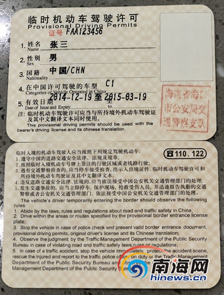 對因旅游、商貿(mào)、探親等短期在海南入境停留的境外人員,可持境外機動車駕駛證直接申請小型汽車臨時駕駛許可,免予到醫(yī)院進(jìn)行身體條件檢查。