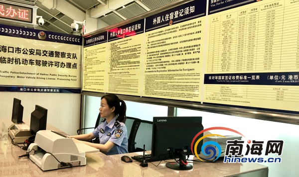 辦理外籍人員入境申請臨時駕駛許可業(yè)務(wù)。海口交警供圖