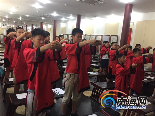 南海網(wǎng)小記者北京逐夢研學(xué)營營員在國子監(jiān)行開筆禮。南海網(wǎng)記者 林鴻羽 攝