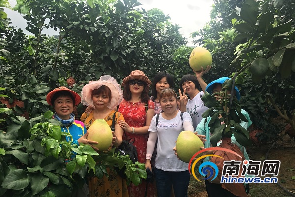 8月4日上午,樂東只九村金果樂基地里熱鬧非凡。游客們一邊品嘗香甜美味的柚子,一邊體會夏日“鄉游”的清涼愜意。