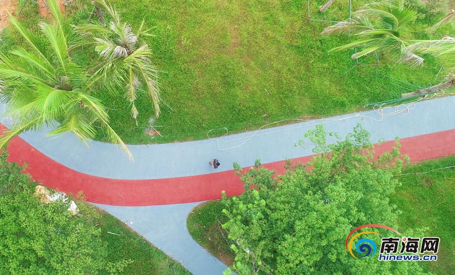 海南旅游頭條、南海網(wǎng)、南海網(wǎng)客戶端海口8月13日消息(海報(bào)集團(tuán)全媒體中心記者 張茂)8月13日,高空俯瞰完成部分路段的??谑屑t城湖公園環(huán)湖健身步道。