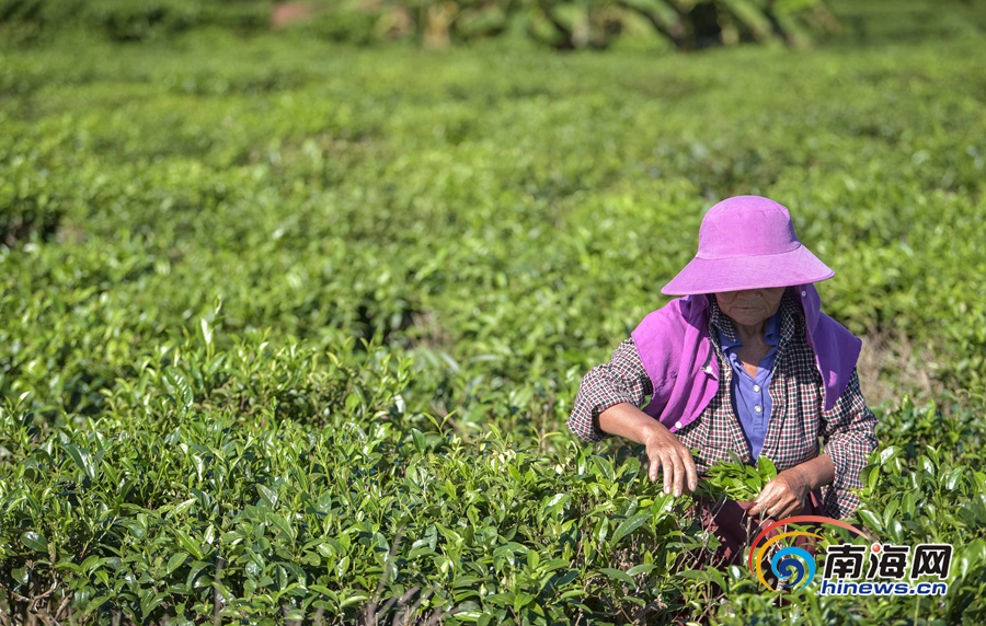 白沙茶農(nóng)喜采夏秋茶。海報(bào)集團(tuán)全媒體中心記者 袁琛 攝