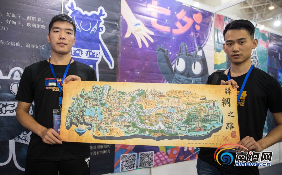 來自陜西的一家公司展示的手繪絲綢之路地圖。南海網記者 劉洋攝