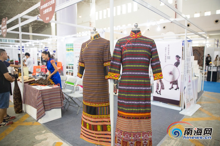 展示的海南黎錦旗袍。南海網記者 劉洋攝