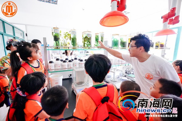 8月16日上午,2019海南南部地區困境(留守)兒童夏令營正式落下帷幕。孩子們正在實驗室查看育種過程。 三亞市民政局供圖