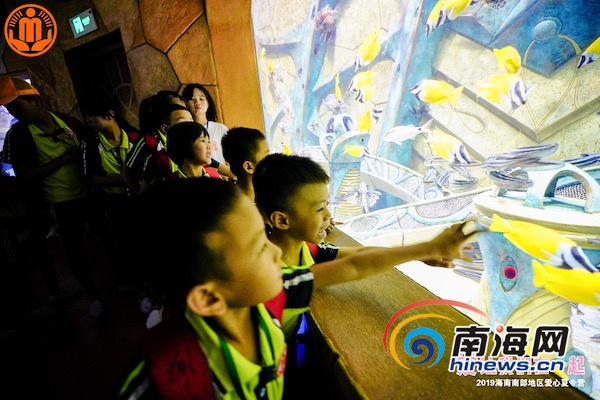 8月16日上午,2019海南南部地區困境(留守)兒童夏令營正式落下帷幕。孩子們在三亞·亞特蘭蒂斯水族館參觀。 三亞市民政局供圖