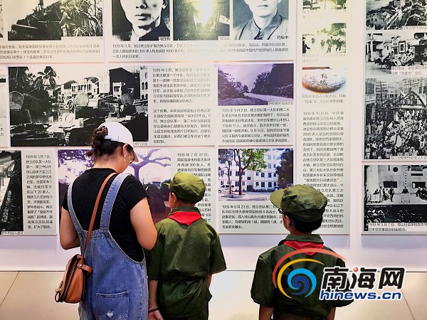 親子家庭在展覽館認真觀看歷史介紹。南海網記者 蘇靚 攝