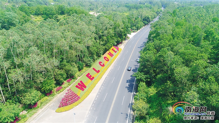 瓊海博鰲入口處,用鮮花擺放的“WELCOME”(英文“歡迎”的意思)字樣。 海南日?qǐng)?bào)記者 袁琛 攝