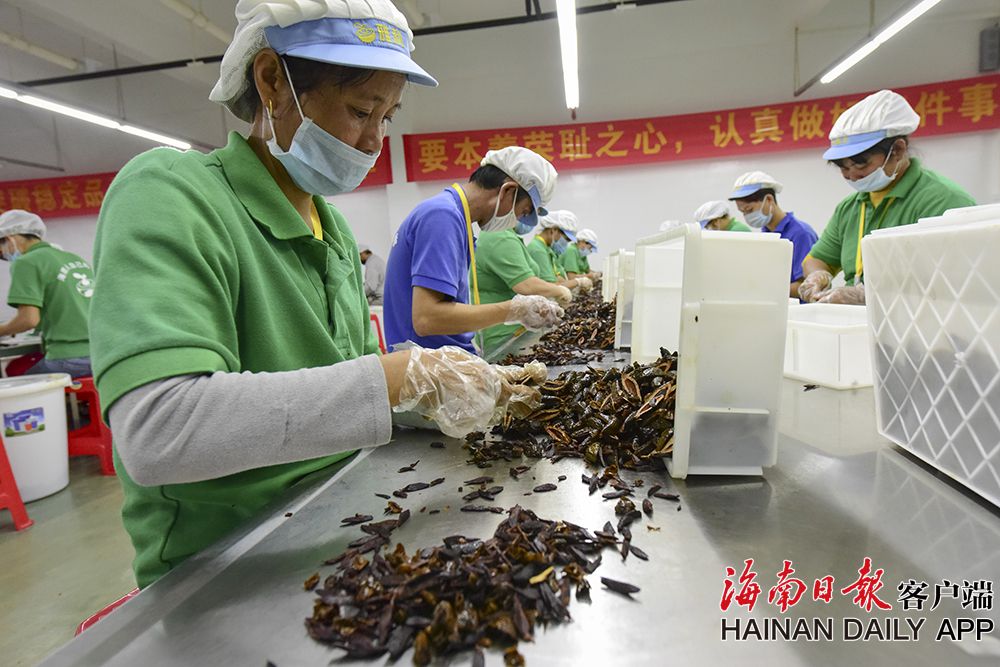 萬寧長豐鎮的雅利檳榔廠,工人們各自忙碌在自己的生產線上。海南日報記者 袁琛 攝