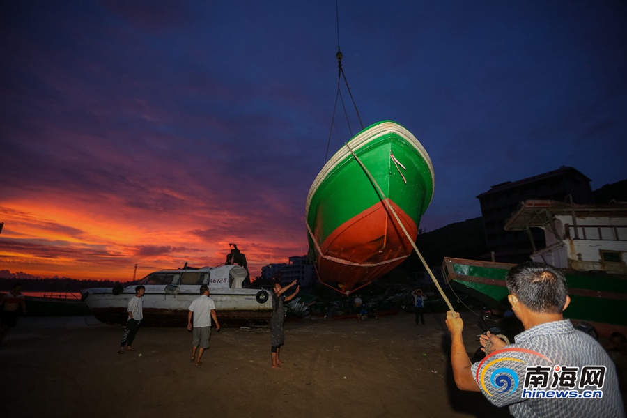 組圖丨海南:臺風(fēng)“楊柳”欲來 漁船吊裝“上岸”避風(fēng)