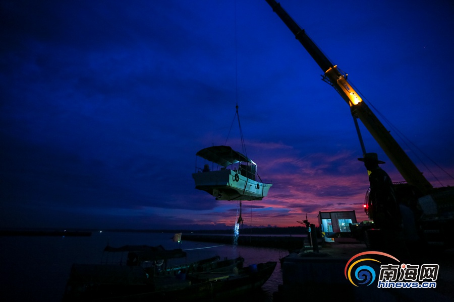 海南旅游頭條、南海網(wǎng)、南海網(wǎng)客戶端萬寧8月28日消息(海報集團全媒體中心記者 袁琛)8月28日,位于萬寧市的烏場港碼頭,起重機把一艘艘漁船吊上岸避風(fēng)。