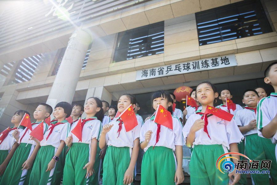 少先隊員揮舞著手中的五星紅旗。南海網記者 劉洋攝