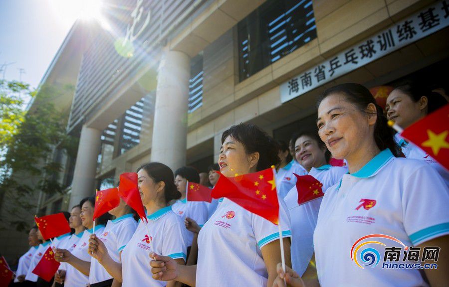 大家隨著歌聲,揮舞著手中的五星紅旗。南海網記者 劉洋攝