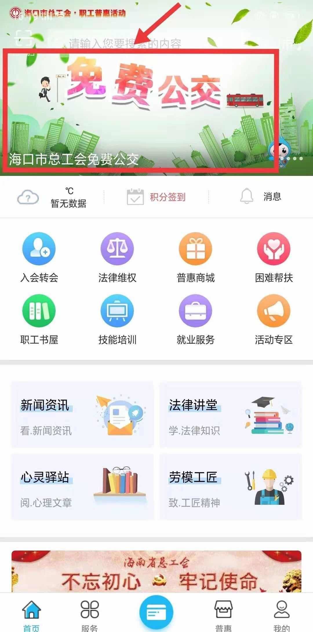 已經(jīng)在海南工會云APP上實名認(rèn)證成功的海口市總工會會員,每天可通過點擊海南工會云APP首頁上的”免費公交“活動頁面,跳轉(zhuǎn)到微信海口公交乘車碼小程序,領(lǐng)取電子車票,免費乘坐公交車上下班。尚未參與該活動的工會會員,需要下載海南工會云APP注冊并完成實名認(rèn)證,成為海口市總工會的實名認(rèn)證會員就可以享受免費乘坐公交車的優(yōu)惠活動。