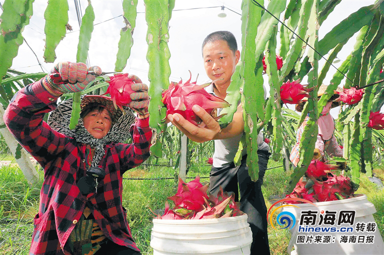 9月14日,昌江烏烈鎮農戶采摘火龍果。 海南日報記者 陳元才 通訊員 楊耀科 攝
