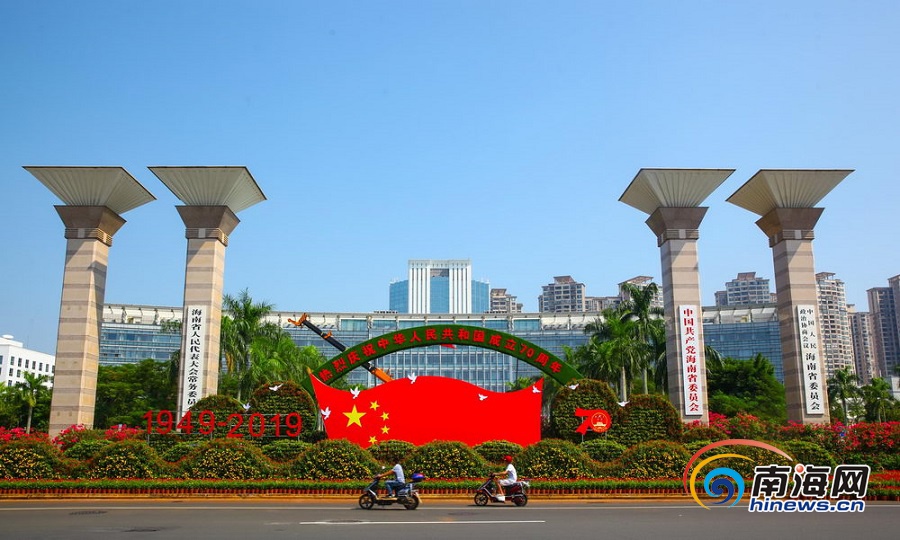組圖 | 國旗鮮花扮靚海口街頭 喜迎2019年國慶到來