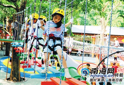 10月3日,小游客在海口火山口地質(zhì)公園親子樂園體驗火山攀爬體驗、空中叢林穿越等游樂項目。海南日報記者 張茂 通訊員 熊麗 攝