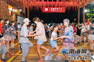 10月2日晚,游客在三亞紅色娘子軍演藝公園參與紅色體驗活動。海南日報記者 武威 攝