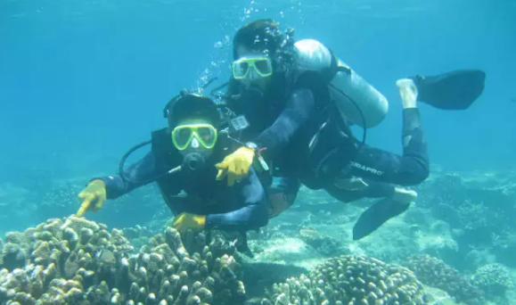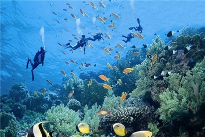 在這里,游客可以下潛到海底觀賞到堪比人間花園的活體珊瑚礁群、神秘的海底沉船、“海底村莊”遺址、“七福神”古神像、珊瑚人工保育平臺、飛機殘骸和多彩的海洋生物等,也可以下潛到島嶼東面海蝕崖下觀賞水下的奇特海蝕巖洞地貌。
