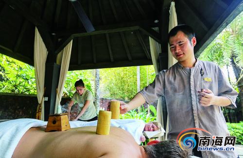 外國游客在三亞享受中醫理療服務。海南日報記者 武威 攝