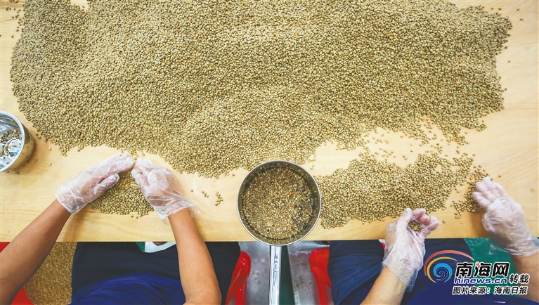 大豐咖啡產(chǎn)業(yè)集團(tuán)職工在挑選咖啡豆。 本報(bào)記者 袁琛 攝