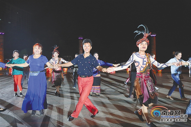 “不管你來自哪里,不管你聽不聽得懂我們的語言,我們都要祝福你,讓你幸福!”入夜后的七仙文化廣場,由保亭民族歌舞團等帶來的民族歌舞演出,展演了竹竿舞、火把舞、平安舞、打碗舞等多種傳統歌舞,而篝火晚會和嬉水狂歡兩大亮點也吸引大批群眾及游客參與互動。