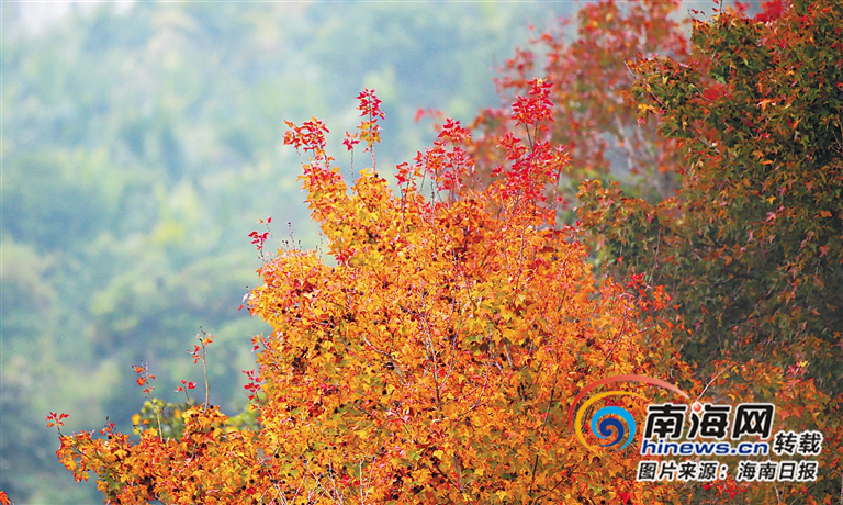 冬至前,五指山市水滿鄉(xiāng)的楓樹披上“紅妝”。海南日報(bào)記者 李天平 攝