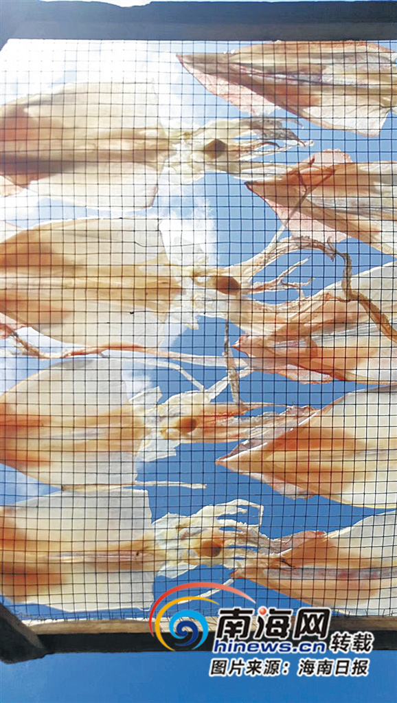 萬寧漁民有把魷魚加工、晾曬成魷魚干儲存、出售的傳統。他們采用傳統工藝,把魷魚清洗處理干凈,然后掛在支架上或擺放在葦箔上晾曬成魷魚干。