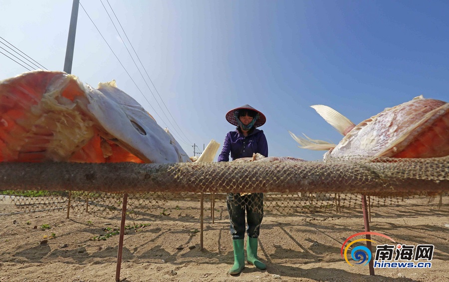 漁民們忙著晾曬紅魚干。海報集團全媒體中心記者 陳元才 攝