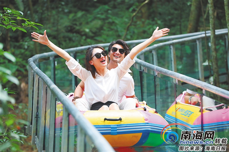 海南日報記者了解到,該高空漂流項目全長2020米,落差約百丈,設有4處360度的雙層環形盤旋、15處S形彎道,和一處9D恐龍主題聲光電秀,透明無邊的全視野設計,不僅可以讓游客體驗到高空呼嘯而過的快感,還能換一種角度欣賞到熱帶雨林的鬼斧神工之美。