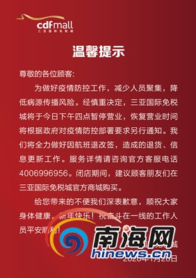 抗擊疫情·防控 | 三亞國際免稅城1月26日下午4時起暫停營業