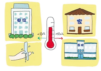 進入辦公樓前自覺接受體溫檢測,體溫正常可入樓工作,并到衛生間洗手。若體溫超過37.2℃,請勿入樓工作,并回家觀察休息,必要時到醫院就診。