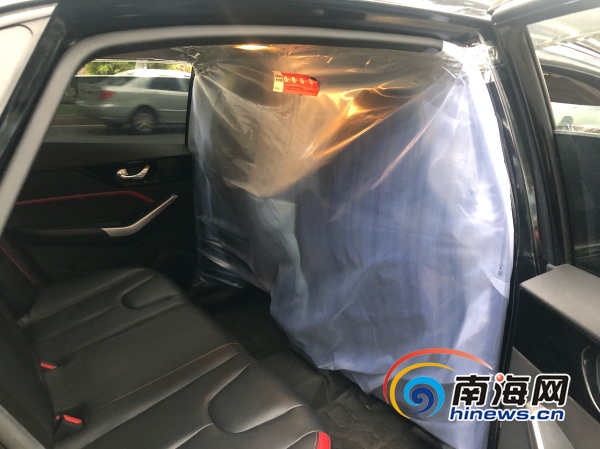 網(wǎng)約車恢復運營后,許多??诤腿齺喌木W(wǎng)約車有了新變化,車輛前排和后座之間多了一層防護膜。南海網(wǎng)記者 周靜泊 攝
