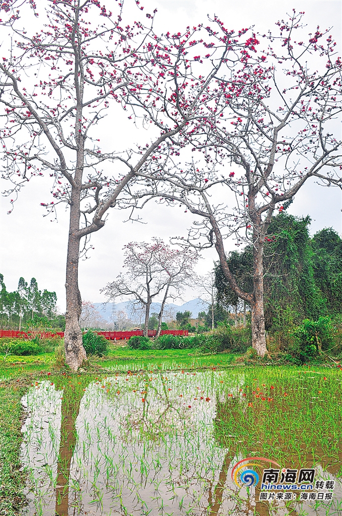 昌江黎族自治縣叉河鎮排岸村的木棉水田景觀。張王明 攝