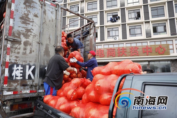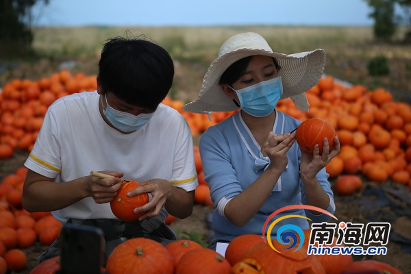 目前,在直播現(xiàn)場(chǎng),愛(ài)心車(chē)隊(duì)的隊(duì)員正在將南瓜進(jìn)行裝車(chē)配送。南海網(wǎng)記者李昊攝