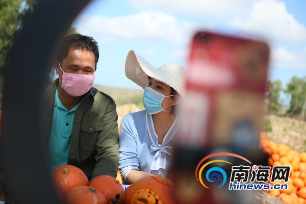 直播現(xiàn)場(chǎng),南瓜種植戶麥壯苗一一為網(wǎng)友介紹南瓜的品種和食用價(jià)值及方法等,直播現(xiàn)場(chǎng)互動(dòng)趣味滿滿。南海網(wǎng)記者莫光法攝